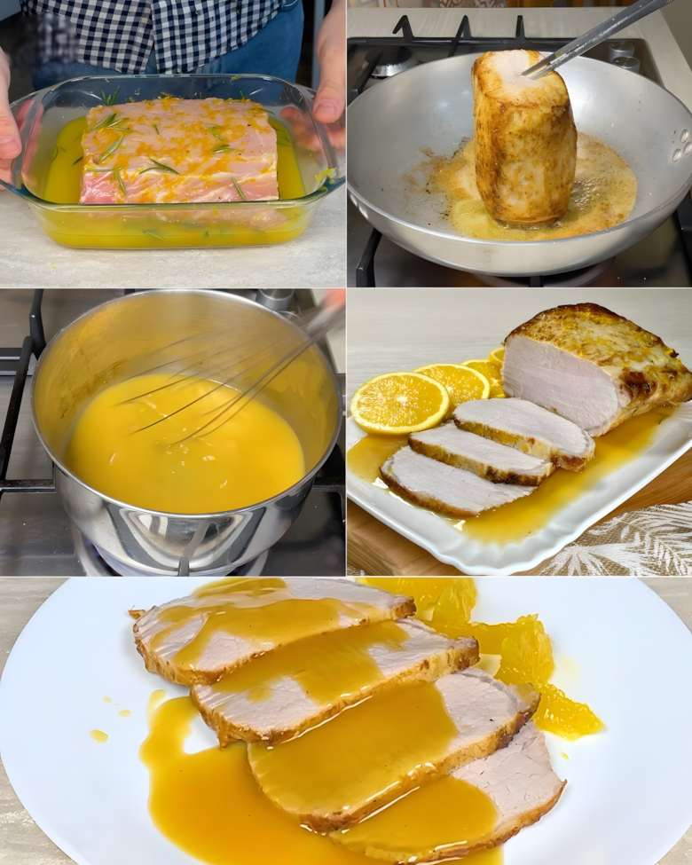 Dit gerecht combineert de zachte smaak van varkensvlees met de frisse, lichtzoete toets van sinaasappel, waardoor het ideaal is voor feestelijke gelegenheden of elegante diners. De marinade op basis van sinaasappelsap en -schil maakt het vlees bijzonder mals en vol smaak.