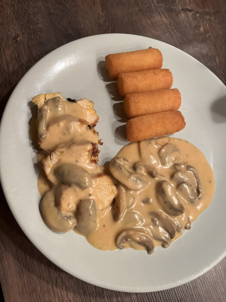 šŸ— Kipfilet met Champignonroomsaus en Kroketjes