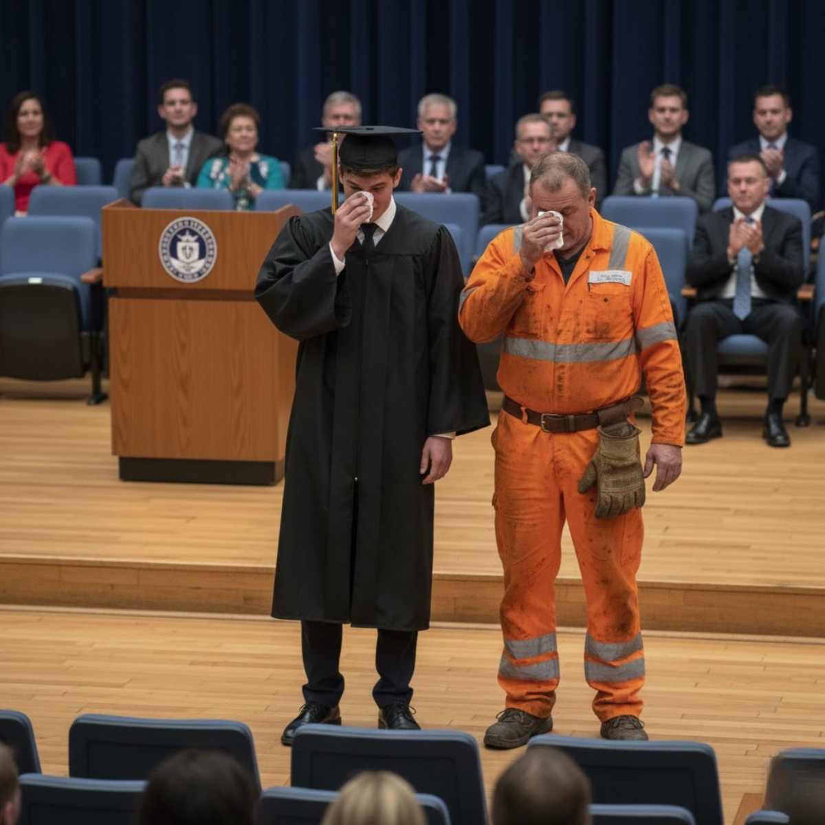 Ze maakten me belachelijk omdat ik de zoon van een vuilnisman ben, maar tijdens de diploma-uitreiking zei ik maar één zin… en iedereen werd stil en begon te huilen… -nhuy