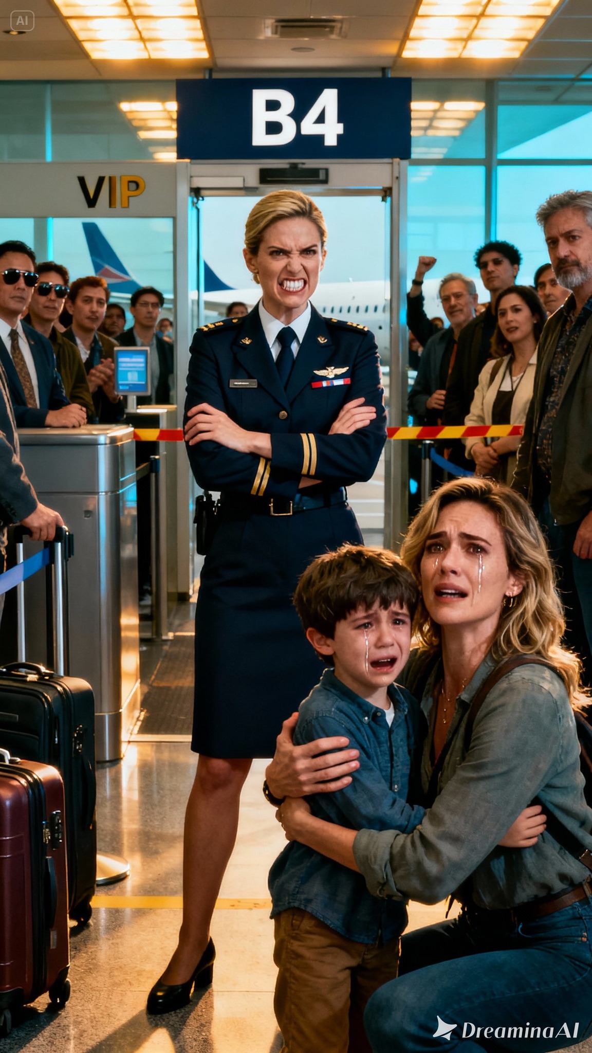 De sfeer bij Gate B4 was een chaotische mix van muffe lucht, gerecyclede angst en de vage, plakkerige geur van Cinnabon. Ik, Anna Vance, en mijn achtjarige zoon, Leo, stonden in de drukke, kronkelige rij, te wachten om aan boord te gaan van de vlucht die ons naar de zijde van mijn zus zou brengen. Een plotseling, angstaanjagend hersenaneurysma had haar op de intensive care doen belanden en elke minuut voelde als een gestolen seconde. Ik had mijn hele leven in een tijdsbestek van vier uur herschikt, de last-minute, waanzinnig dure tickets geboekt en Leo een ‘avontuur’ beloofd om hem af te leiden van de voelbare angst om zijn geliefde tante zo ernstig ziek te zien.
