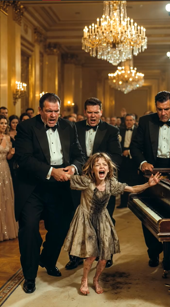 « Haal haar eruit, » beval mevrouw Davenport, haar stem nu kortaf en hard, haar geduld was op. Dit was een schande, een smet op haar perfecte avond. De bewakers grepen de dunne armen van het meisje vast en omsloten haar biceps moeiteloos met hun grote handen.