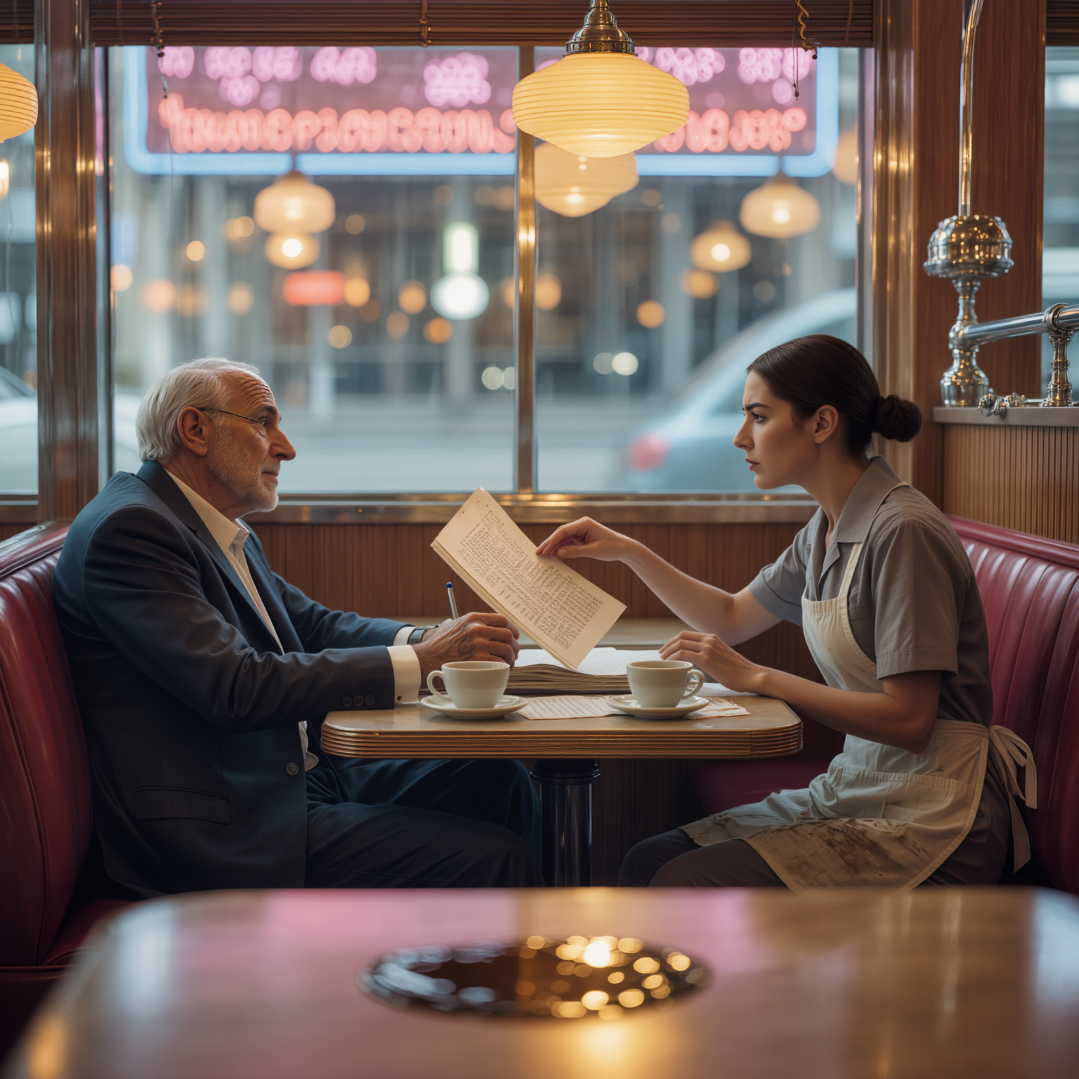 Maar Bronson keek niet naar de papieren. Hij keek naar de vrouw in het bevlekte schort die naast hem stond. De serveerster, die hem slechts twee uur eerder zijn laatste goedkope koffie in een eetcafé in New York had ingeschonken, wees naar één enkele regel in het document van vierhonderd pagina’s. Een regel die niet zomaar een fout was. Het was een leugen van driehonderd miljoen dollar.