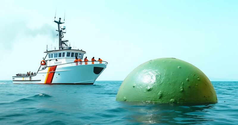 — Is dat… een mijn? — fluisterde een van de matrozen terwijl hij zich aan de reling vasthield.