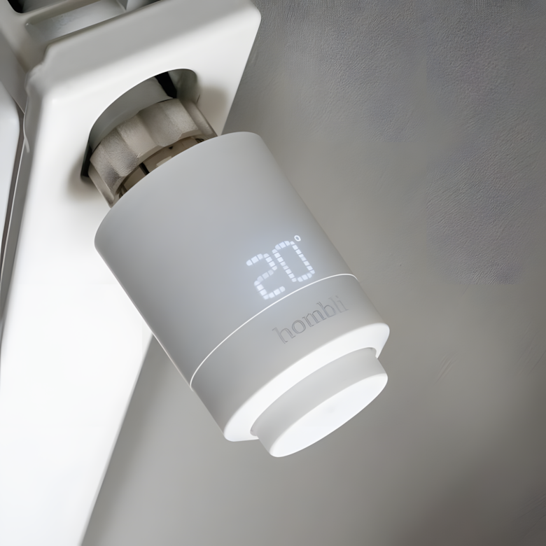 Je kijkt hier naar het Hombli Smart Radiator Thermostat Starterkit – een compleet pakket waarmee je direct van start kunt. In de verpakking zitten: