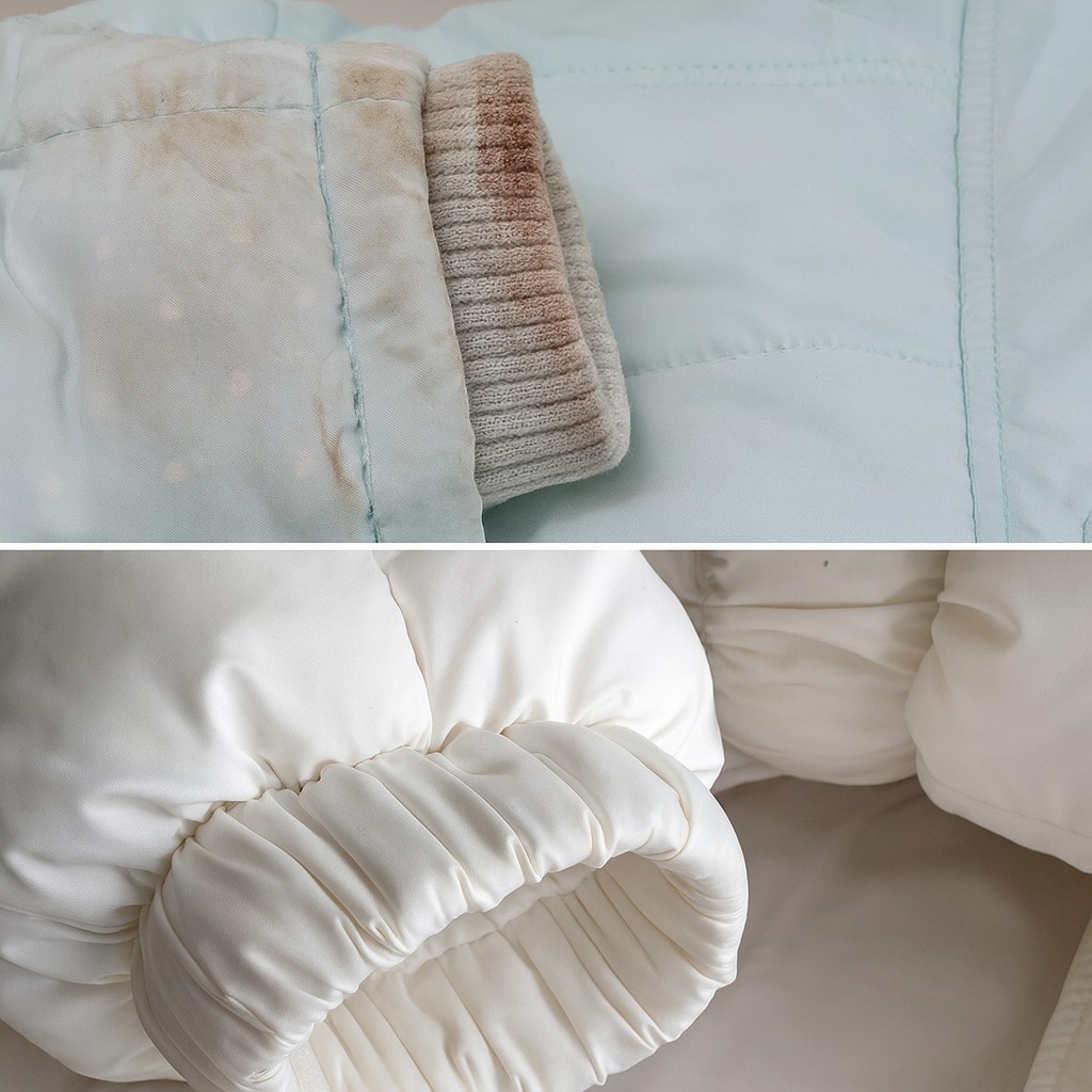 Padded or down jackets are often expensive and delicate garments. With daily use, the most exposed areas—like the sleeves, collar, and pockets—tend to get dirty quickly, accumulating grease, dust, or scuff marks.