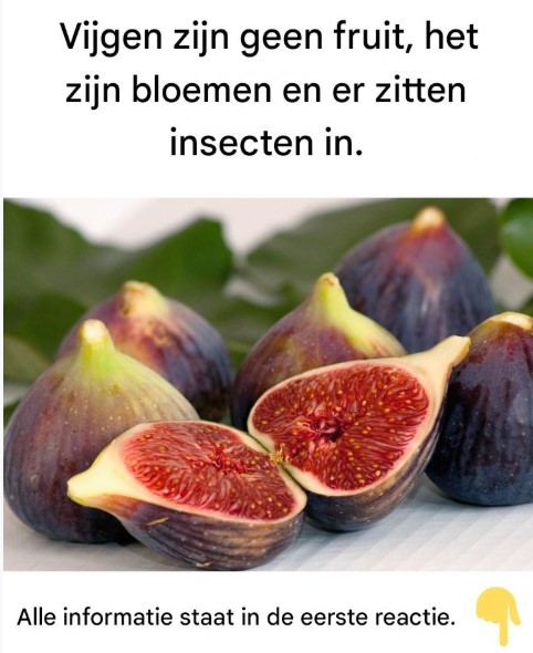 Vijgen zijn geen vruchten, maar omgekeerde bloemen. Vijgenbomen bloeien niet zoals appel- of perenbomen. Hun bloemen openen zich in de peervormige kelk, waaraan de vrucht zijn naam dankt.