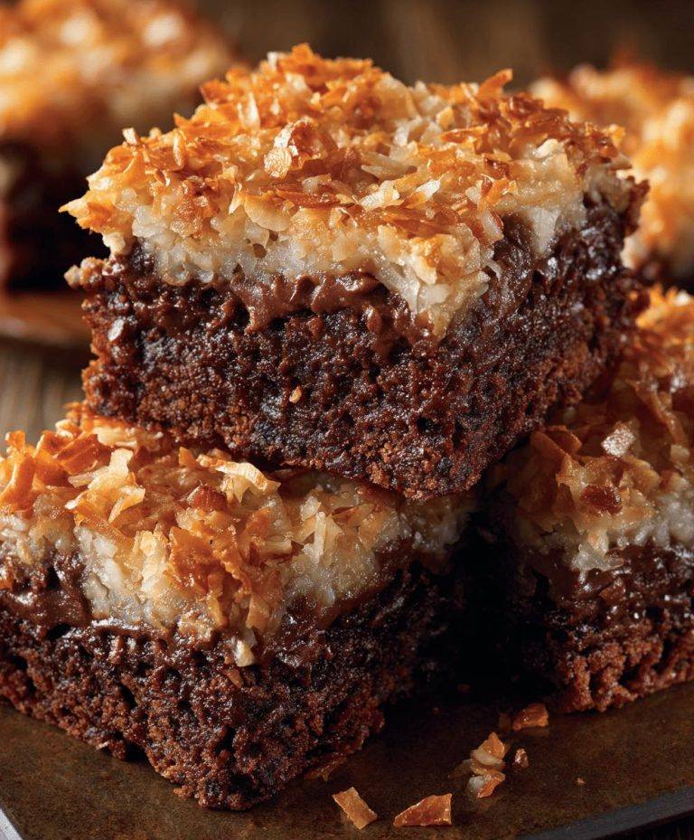 Dit recept combineert de klassieke smaken van Duitse chocoladecake en transformeert ze in een makkelijk te maken dessert. Geen lagen, geen ingewikkelde stappen – gewoon een rijke, smeltende browniebodem met een zoete, nootachtige kokos-pecannootlaag.