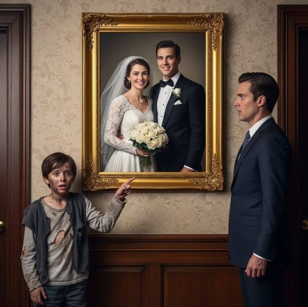 Een dakloze jongen zag een trouwfoto en fluisterde: « Dat is mijn moeder. »