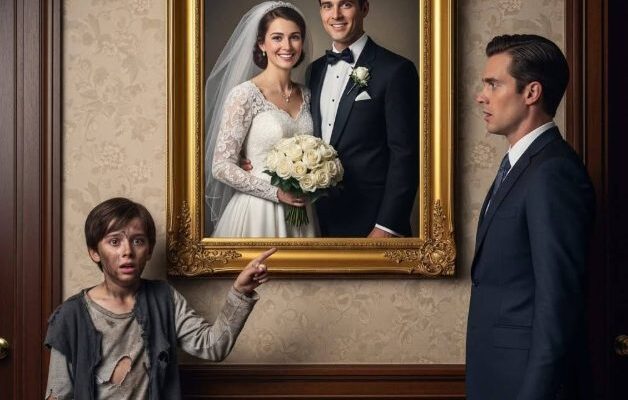 Een dakloze jongen zag een trouwfoto en fluisterde: « Dat is mijn moeder. »