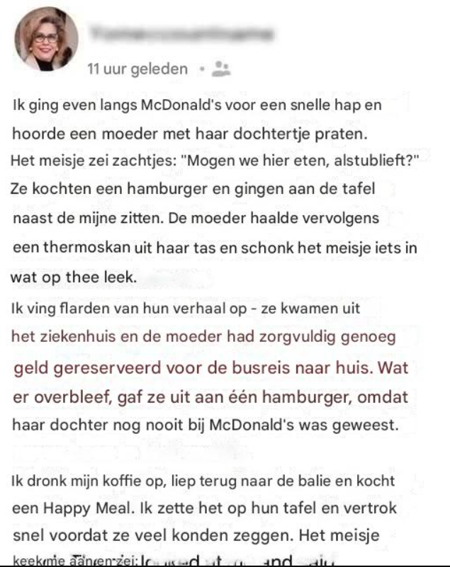 Na een lange, vermoeiende dag ging ik even langs McDonald’s in de hoop dat een snelle maaltijd me zou helpen ontspannen. Terwijl ik bij de balie wachtte, vulde de vertrouwde geur van friet en hamburgers de lucht en liet ik mijn blik dwalen door de ruimte waar gezinnen gezellig aan het eten waren.