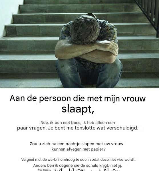 Voor de persoon die met mijn vrouw naar bed gaat: