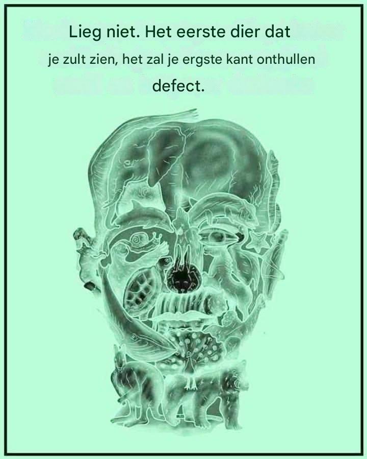 Een afbeelding met verschillende verborgen dieren circuleert constant op sociale media, vergezeld van de zin: « Speel niet vals. Het eerste dier dat je ziet, onthult je grootste fout. » Deze illustratie, die op het eerste gezicht lijkt op de omtrek van een menselijk gezicht, verbergt overlappende rode figuren. Dit soort visuele test is erg populair geworden omdat het nieuwsgierigheid en discussie opwekt over de vraag of het de persoonlijkheidskenmerken van de kijker daadwerkelijk kan identificeren.