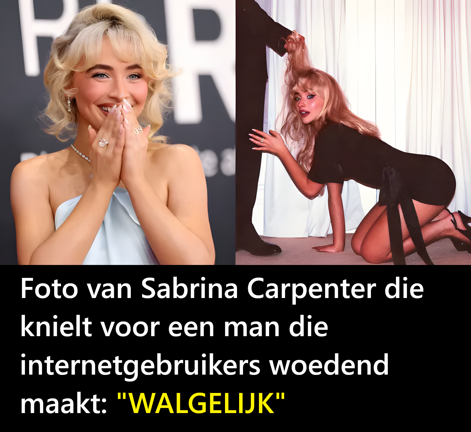 In overleg met haar team koos Sabrina Carpenter een foto van zichzelf, knielend voor een man in een pak die haar haar vasthoudt . Zoals verwacht laaide er online een discussie op over de boodschap. Volgens veel internetgebruikers heeft de zangeres de rol van vrouwen gekleineerd en hen daarmee een slechte dienst bewezen.