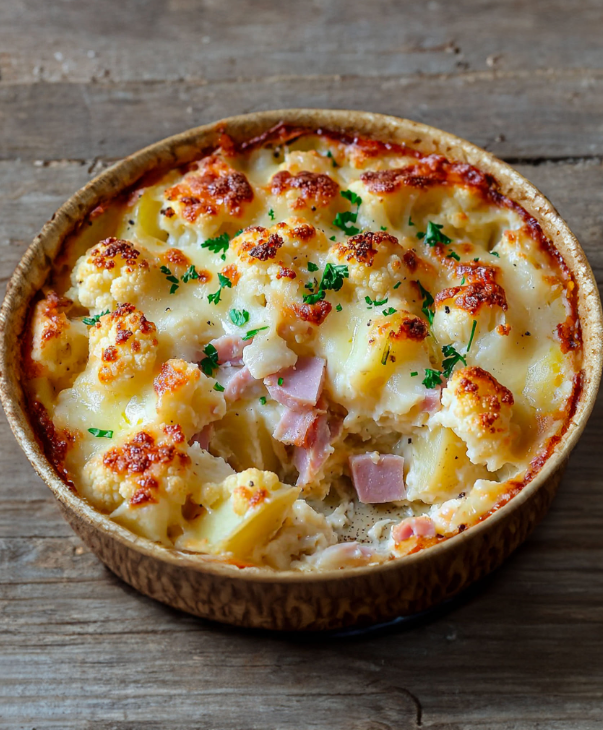 Bloemkool, met zijn malse textuur en subtiel zoete smaak, past prachtig bij de zoetheid van aardappelen. Verrijkt met een romige béchamelsaus en opgevoerd met een vleugje nootmuskaat, is deze gratin een verbeterde versie van klassieke familiegerechten. Het is makkelijk te bereiden, economisch en net zo geschikt voor grote tafels als voor rustige avonden voor twee.