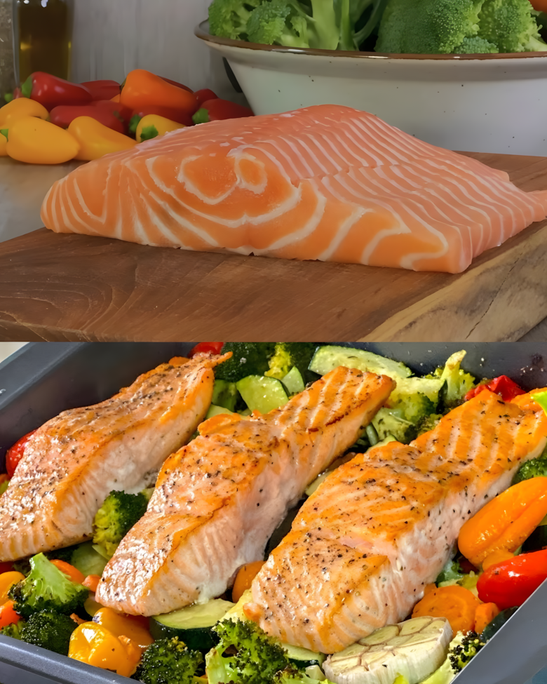 Hier is een complete maaltijd die je smaakpapillen zal verwennen: sappige zalm met geroosterde groenten en een romige mosterdsaus. Een perfect diner voor doordeweeks of om indruk te maken op je gasten in het weekend!