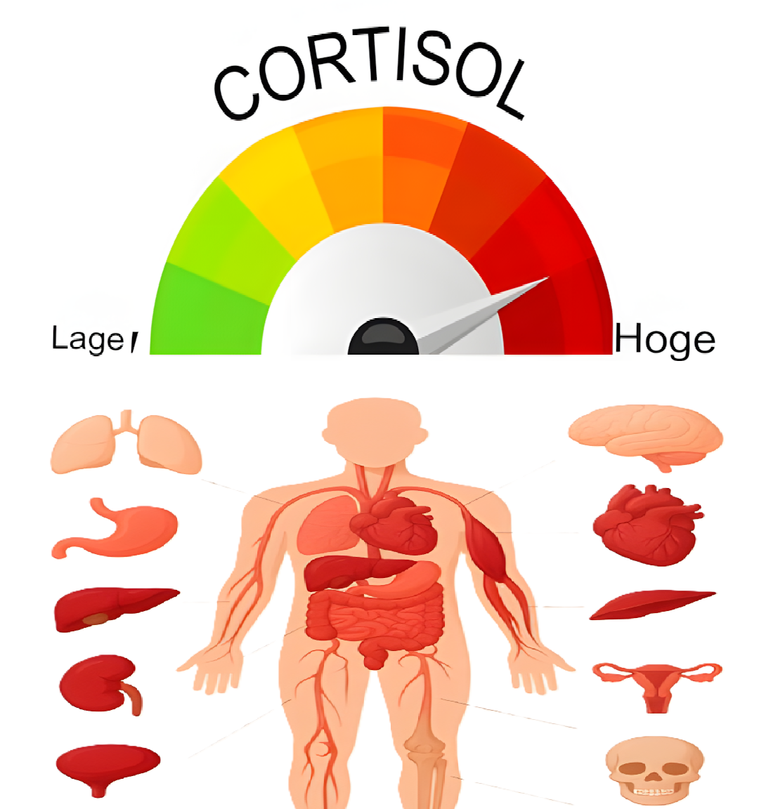Cortisol, het belangrijkste stresshormoon, is verantwoordelijk voor veel belangrijke functies in het lichaam, maar een hoog cortisolgehalte kan ook schadelijk zijn. « Een hoog cortisolgehalte kan verschillende symptomen in het lichaam veroorzaken, die variëren afhankelijk van de oorzaak », legde de darmgezondheidsexpert uit.