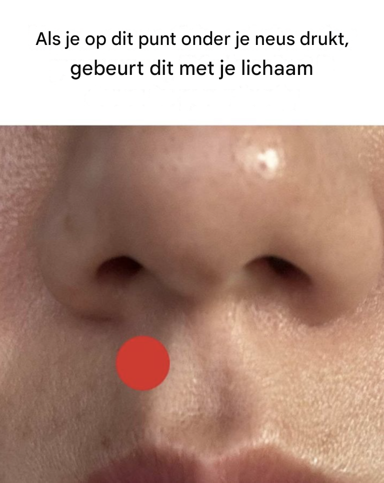 Druk uitoefenen op het punt onder je neus, in acupressuur vaak het philtrumpunt of GV26 (Shui Gou) genoemd , kan inderdaad verrassende effecten hebben. Dit punt, gelegen in de gleuf tussen je neus en bovenlip, wordt in de traditionele Chinese geneeskunde en eerste hulp algemeen erkend vanwege zijn potentieel om de energiestroom te stimuleren en bepaalde aandoeningen te verbeteren.