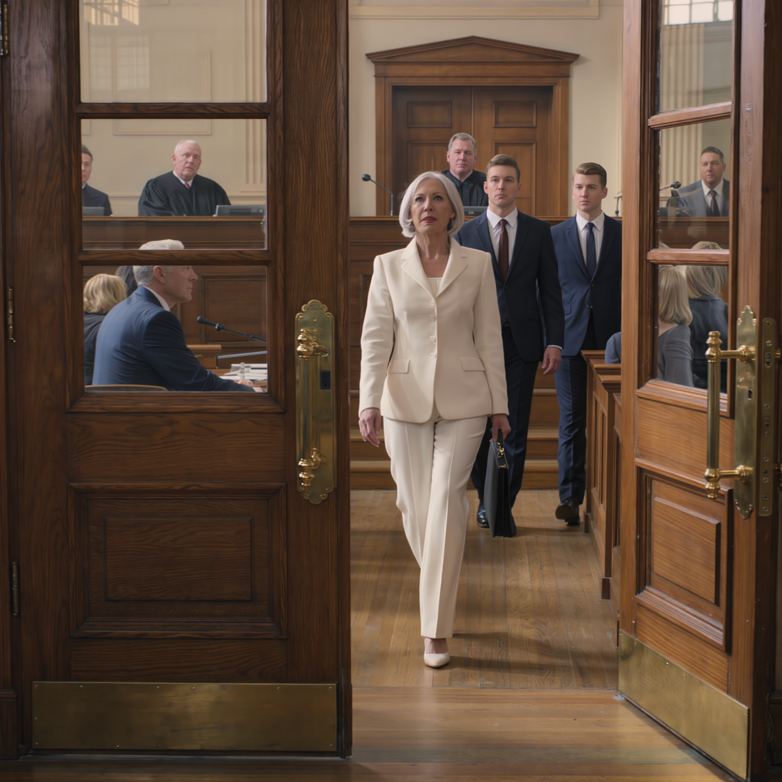 Hij lachte om de lege stoel van zijn vrouw in de rechtszaal, totdat de deuren opengingen en hij besefte wie ze werkelijk had geroepen.