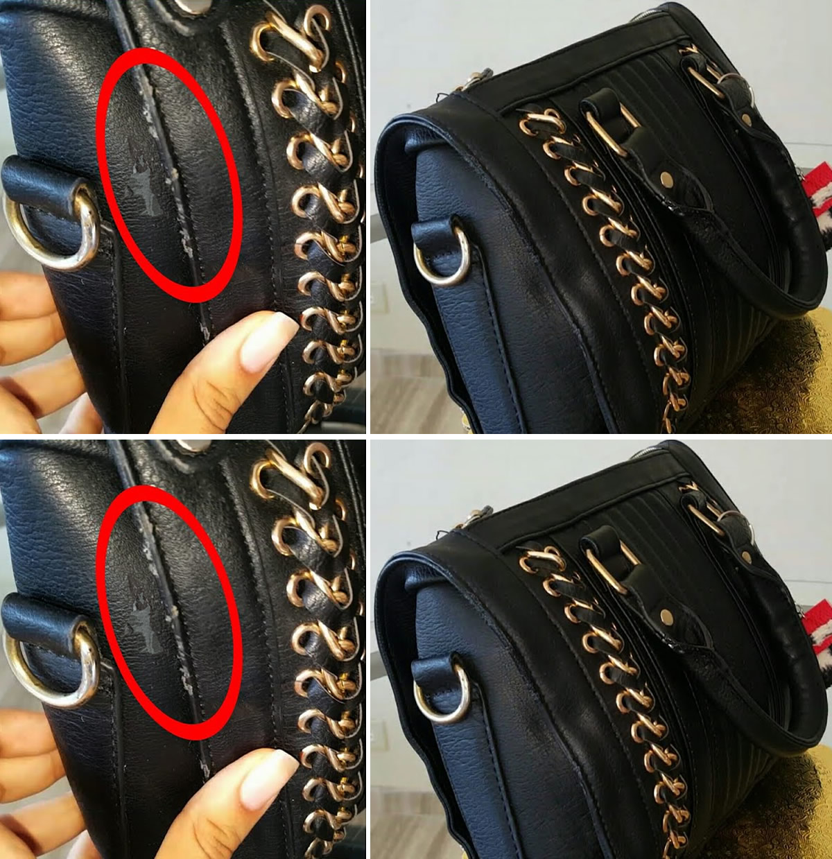 Afwasmiddel is perfect voor het verwijderen van vlekken uit verkruimelde of afgebladderde tassen van leer of synthetisch materiaal. Gom (strikt wit) is praktisch voor het repareren van speciale materialen, omdat je er snijwonden en scheuren mee kunt plakken en verbergen.