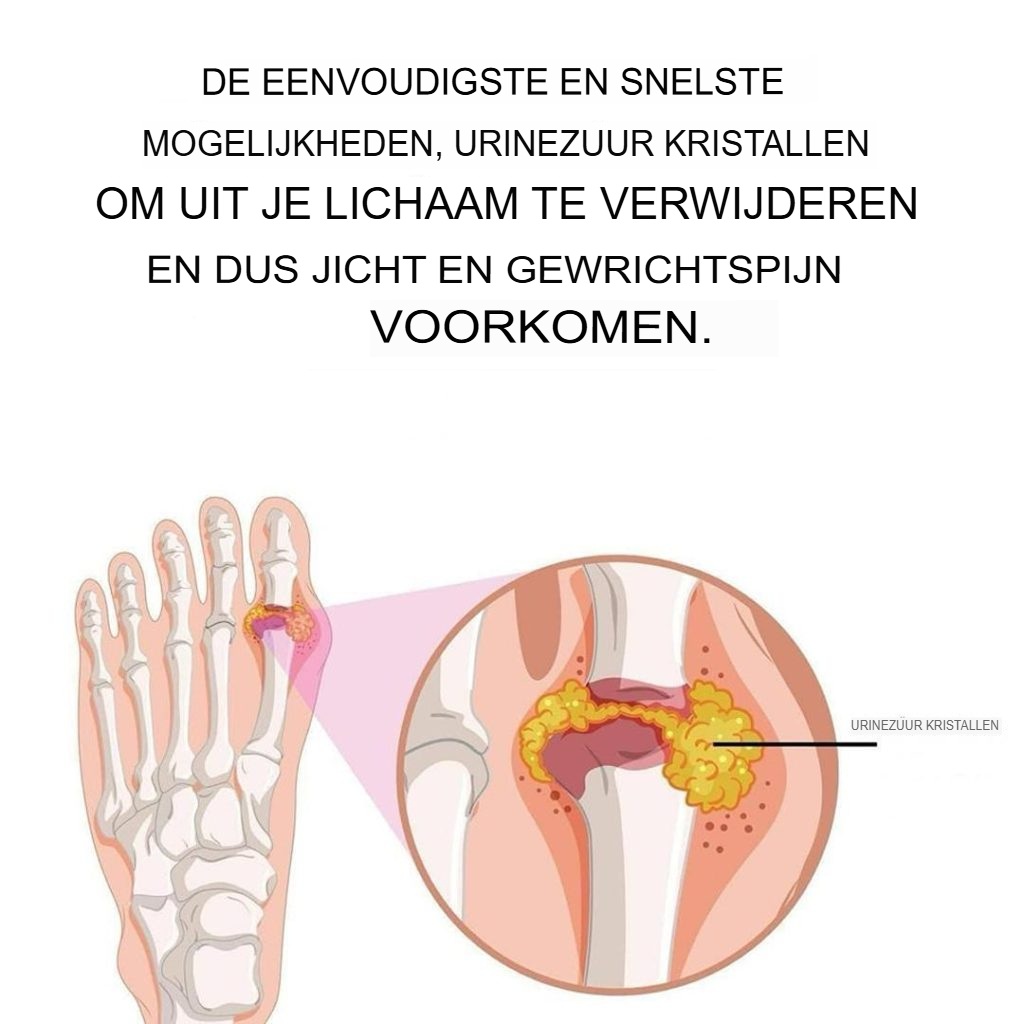 Als het lichaam dit overtollige urinezuur niet kan afvoeren, kan het zich rond de gewrichten ophopen. Het resultaat: pijn, roodheid, zwelling en een gevoel van plaatselijke warmte. Het gewricht van de grote teen wordt vaak als eerste aangetast, maar ook andere gebieden zoals de enkels, knieën, polsen of ellebogen kunnen worden aangetast.