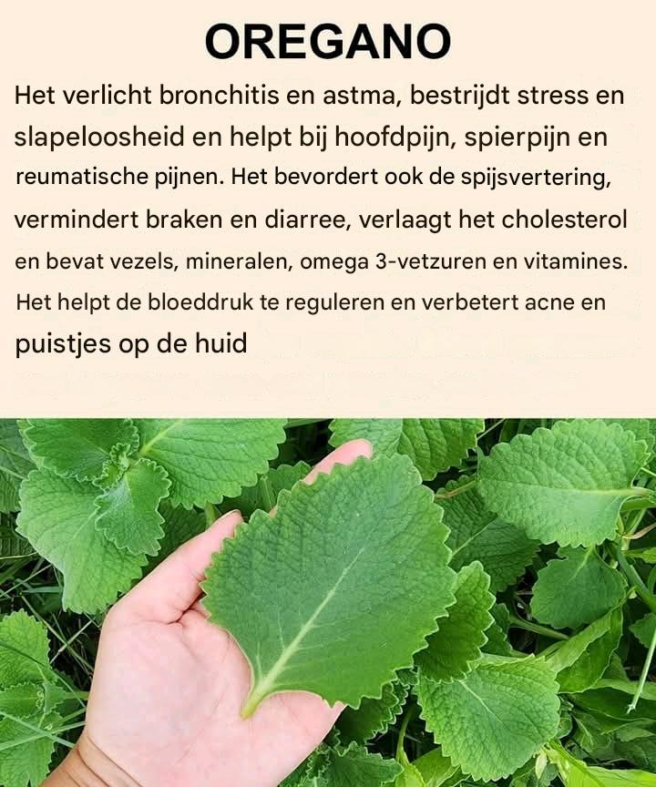 Oregano is niet alleen een geurig keukenkruid – het is een krachtpatser van wellness. In de afgelopen jaren hebben onderzoekers de ongelooflijke antioxiderende, ontstekingsremmende en antimicrobiële voordelen ervan onthuld. Oregano zit boordevol actieve stoffen zoals carvacrol en thymol en helpt bacteriën en virussen te bestrijden, ondersteunt de spijsvertering, verhoogt de immuniteit en bevordert de algehele vitaliteit.