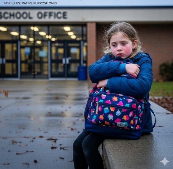 Toen ik haastig aan de andere kant van de stad aankwam, was de verpleegster al vertrokken voor een afspraak en was er geen plek meer in de wachtruimte voor zieke kinderen. De zevenjarige Lily, bleek en rillend in de late februariwind, zat op een betonnen bankje en klemde haar rugzak vast als een deken. Ze huilde niet toen ze me zag. Ze fluisterde: « Kunnen we nu naar huis? » en stond langzaam op, alsof de dag zwaarder was geworden dan zijzelf.