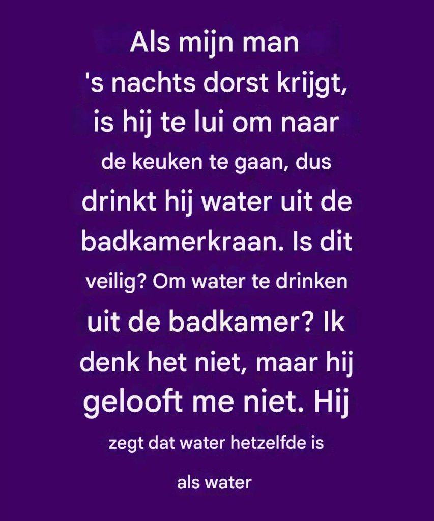 Ik kon de gedachte niet loslaten dat badkamerwater gewoon niet hetzelfde was als het frisse, gefilterde water uit onze gootsteen. « Water is water, » haalde hij altijd zijn schouders op. Toch kreeg op een avond mijn nieuwsgierigheid – gemengd met een beetje ongemak – de overhand. Ik besloot te kijken of hij gelijk had, of dat mijn onderbuikgevoel ergens op sloeg.