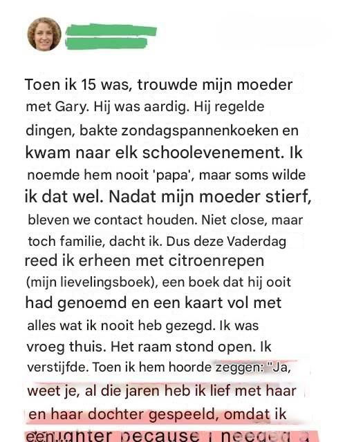 Ik dacht dat ik thuiskwam om een hoofdstuk af te sluiten. Om eindelijk de man te bedanken die binnenkwam toen mijn vader naar buiten stapte. Maar wat ik in plaats daarvan vond, verbrijzelde alles wat ik geloofde over de man die ik bijna papa noemde.