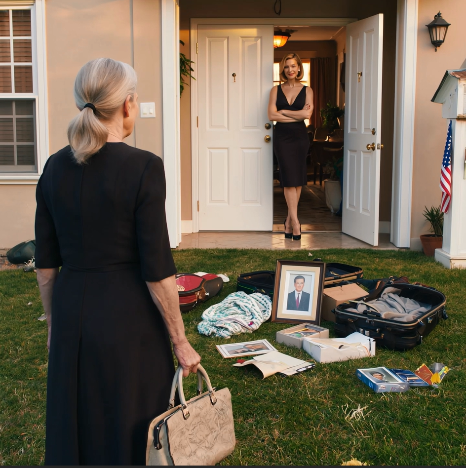 En daar lagen ze, al mijn spullen op het gazon gegooid alsof het afval was. Mijn kleren, mijn schoenen, de foto’s van mijn overleden man, de handgebreide sjaal die mijn oma me gaf voordat ze stierf, de foto’s van mijn kinderen van toen ze nog baby’s waren. Alles, absoluut alles, lag opgestapeld naast de buganvilliaplanten die ik zelf had geplant.