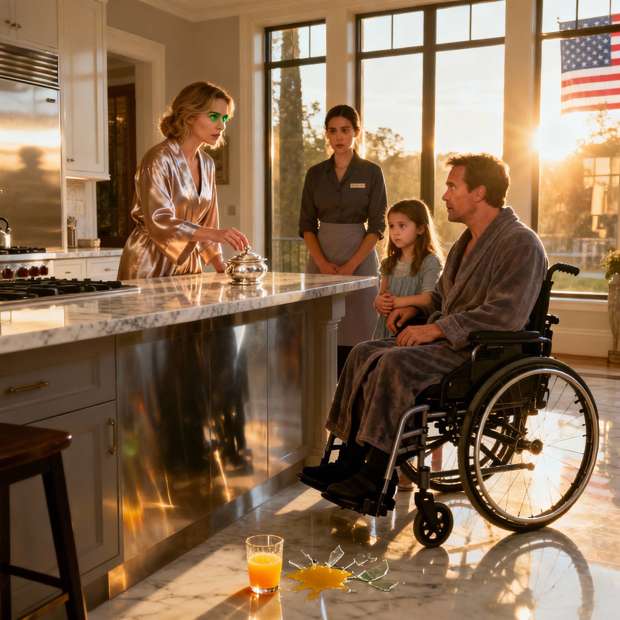 Ik verstijfde. Ik zat ineengedoken in mijn elektrische rolstoel van $ 50.000, een gevangene in een lichaam dat het had opgegeven. Mijn hand, die ik nauwelijks kon beheersen, trilde terwijl ik het op maat geblazen glas sinaasappelsap vasthield.