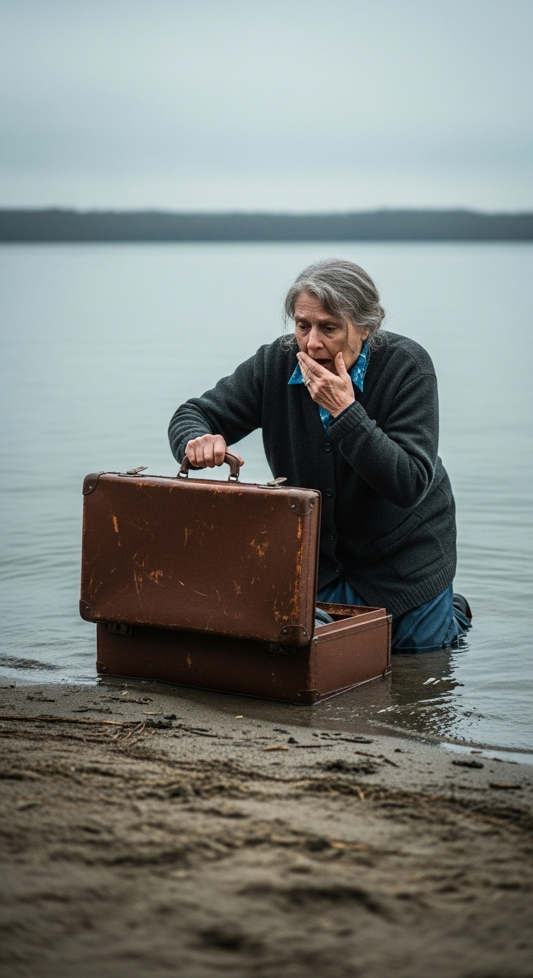 « In een koffer. In het meer. Ik zag iemand het erin gooien. » Ze keek naar mij en toen naar haar partner. « Heb je gezien wie het was? »