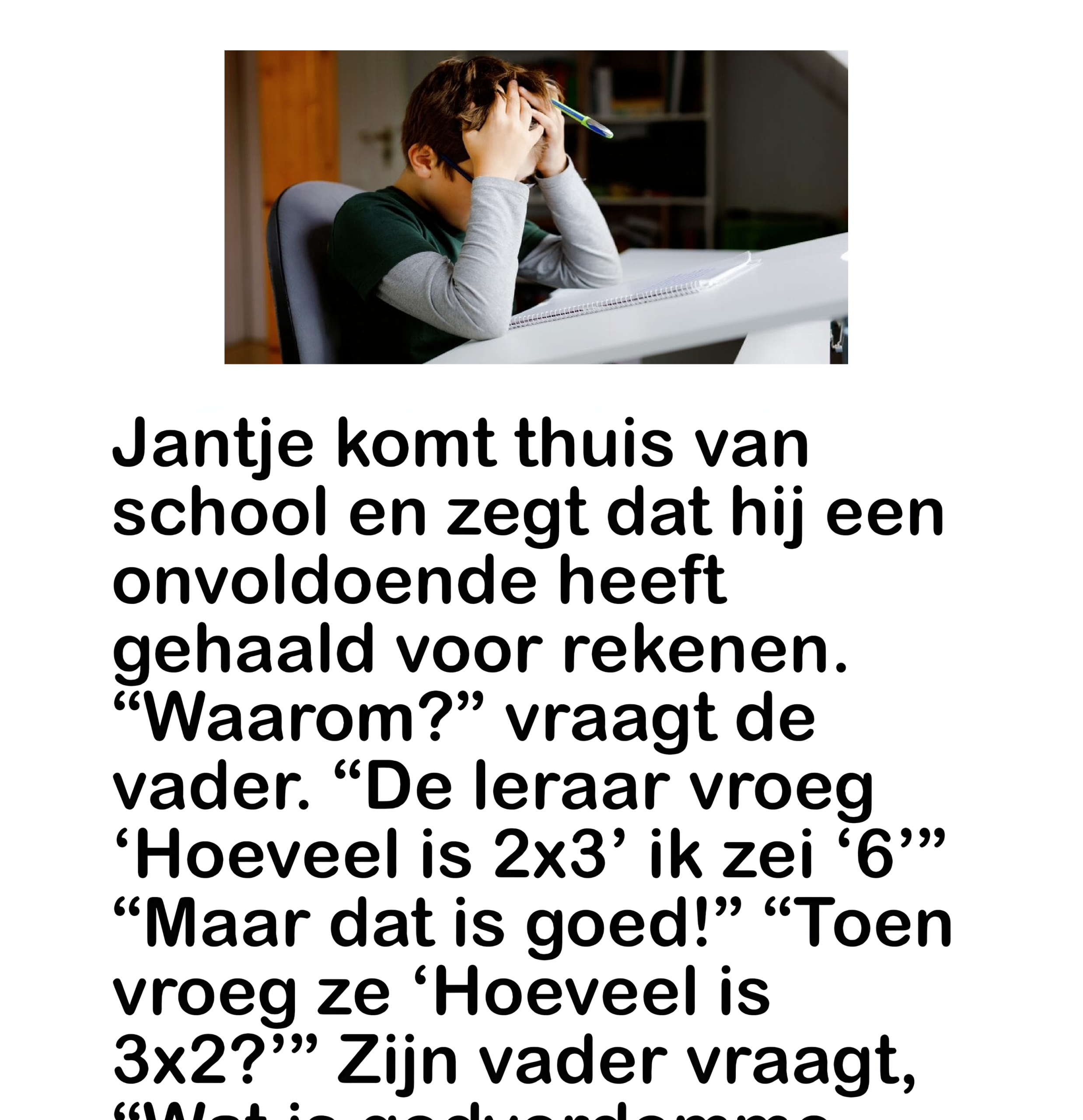 De jongen vervolgt: “Dat dacht ik ook. Maar toen vroeg ze me wat 2 keer 3 was.”