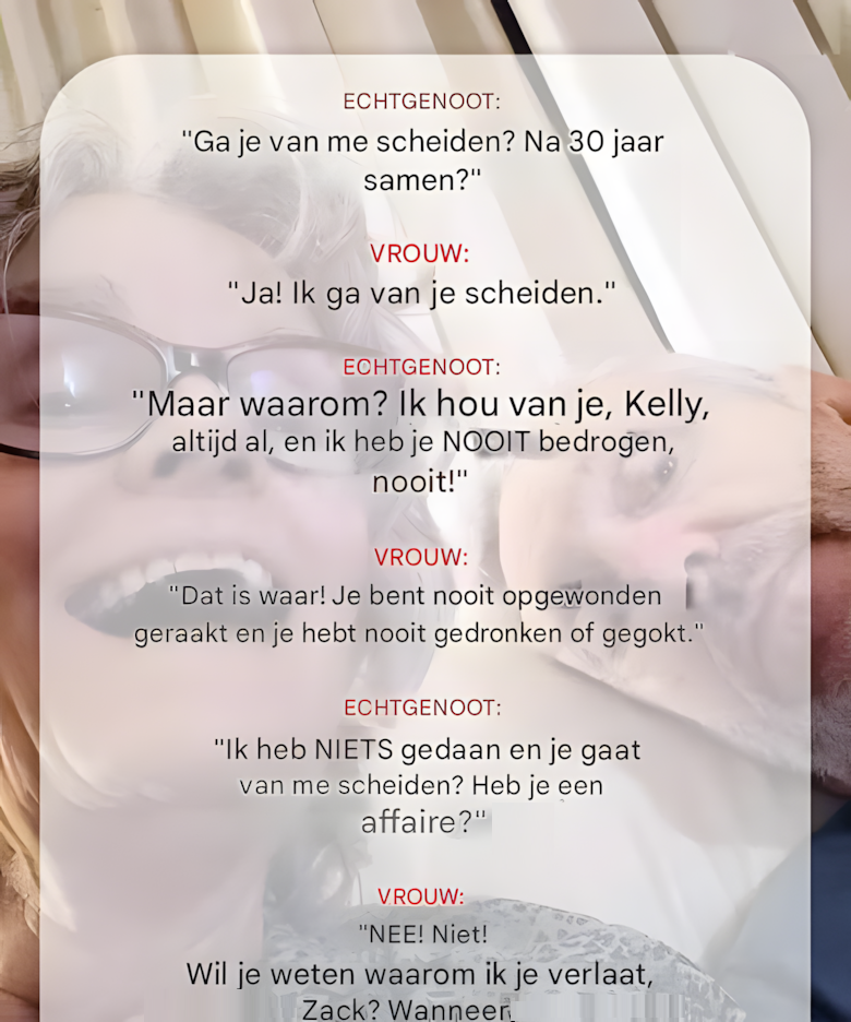 « Dat klopt, » zei ik. « Je was trouw. Je was voorspelbaar. Maar wil je weten waarom ik je echt verlaat? »