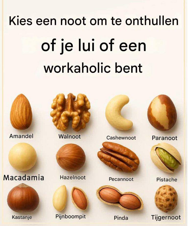 Of je nu gedijt op cafeïne en ambitie of verlangt naar nog een dutje, je gekozen snack kan onthullen hoe je met je leven, werk en verantwoordelijkheid omgaat. Kies hieronder een noot en ontdek of je een vastberaden machine bent, een gulle ziel die op zijn laatste benen loopt, of iemand die echt een pauze nodig heeft.