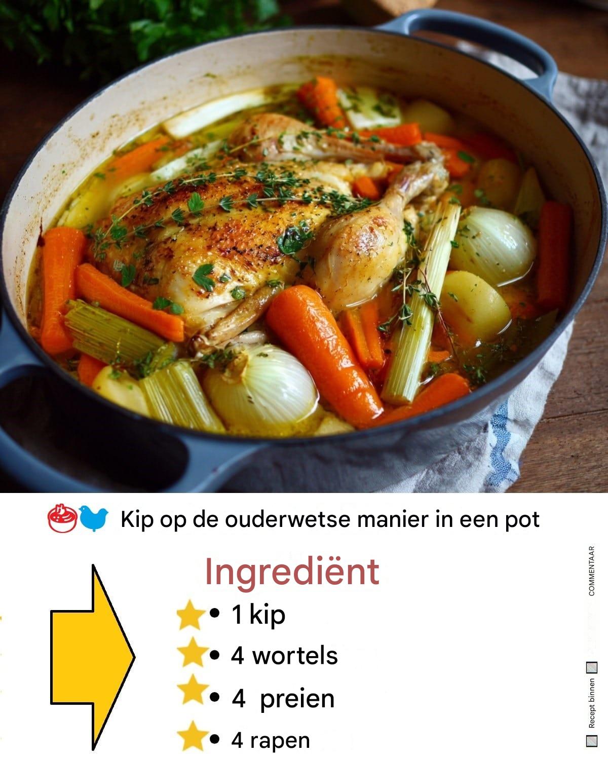 Traditionele kip in een stoofpot is bovenal een gerecht dat geduld en respect voor de ingrediënten vereist. Het bestaat uit een hele kip, vaak een stevig en smaakvol exemplaar, die langzaam gaar wordt gestoofd in een geurige bouillon met seizoensgroenten en aromatische kruiden. Het resultaat is een gerecht dat zowel voedzaam als verfijnd is , waarbij elk ingrediënt zijn smaak volledig tot zijn recht laat komen.