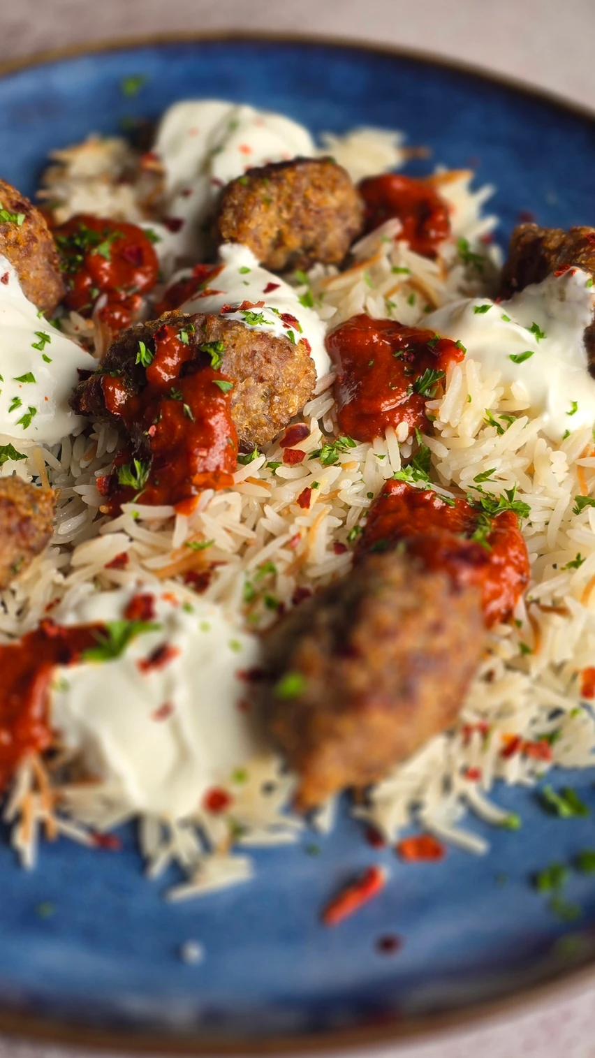 Deze balletjes deden het super goed bij de kinderen: er zit sappig gehakt en fijne bulgur in. In combinatie met pilav, tomatensaus en yoghurt: top gewoon.