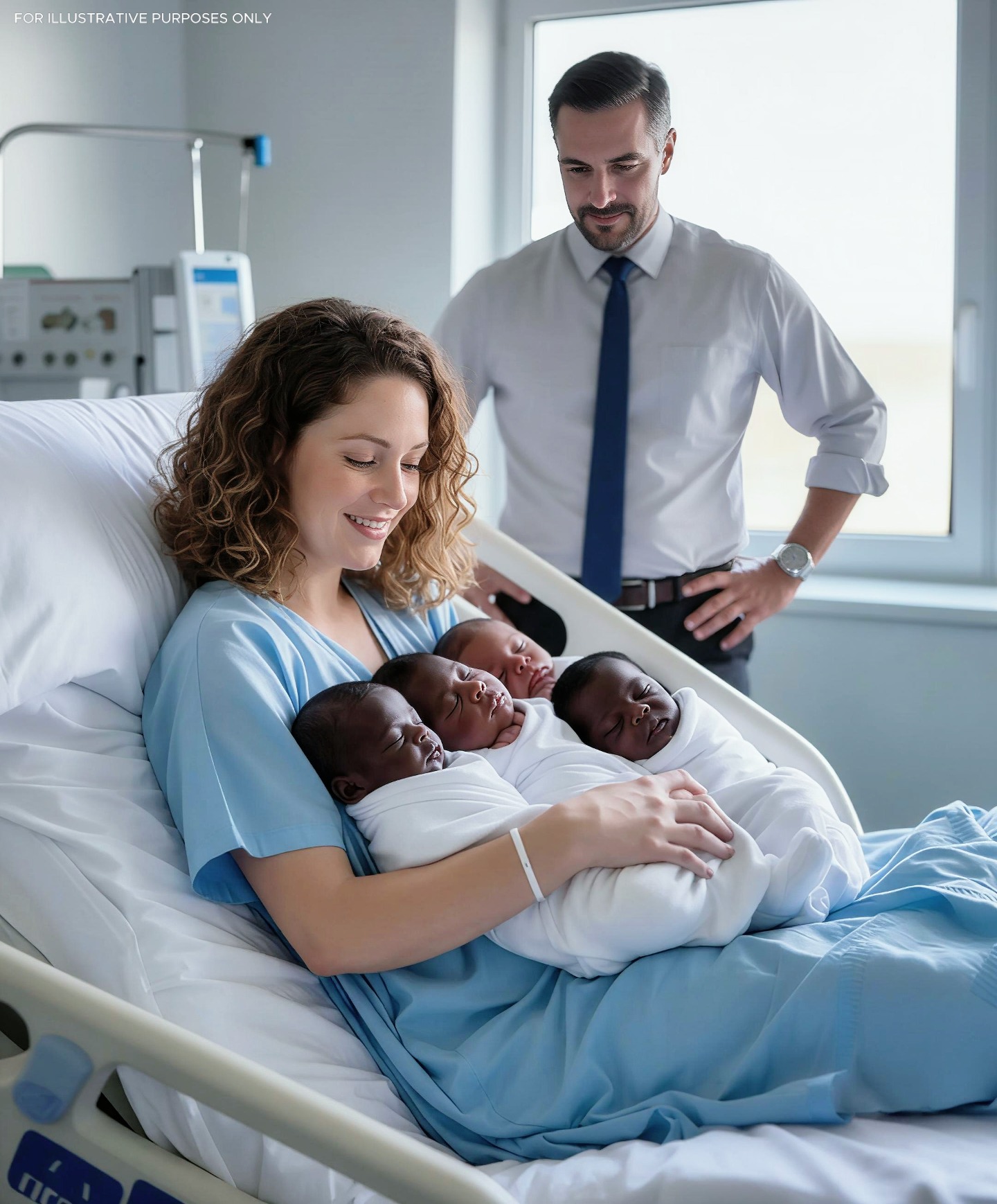 De jonge moeder, uitgeput en toch gloeiend, glimlachte door de tranen heen terwijl ze naar haar vierling staarde. Klein, kwetsbaar en perfect.