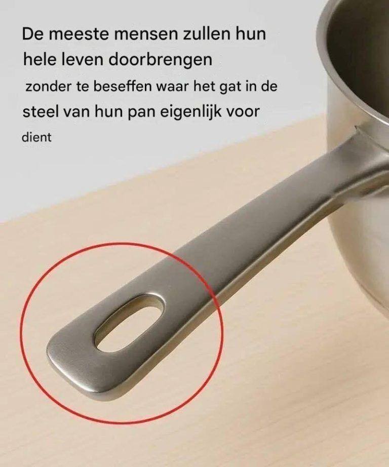Het gat in de handgreep van uw pan is niet alleen om hem op te hangen. Het is een veelzijdig ontwerpkenmerk dat verschillende handige voordelen biedt in de keuken.