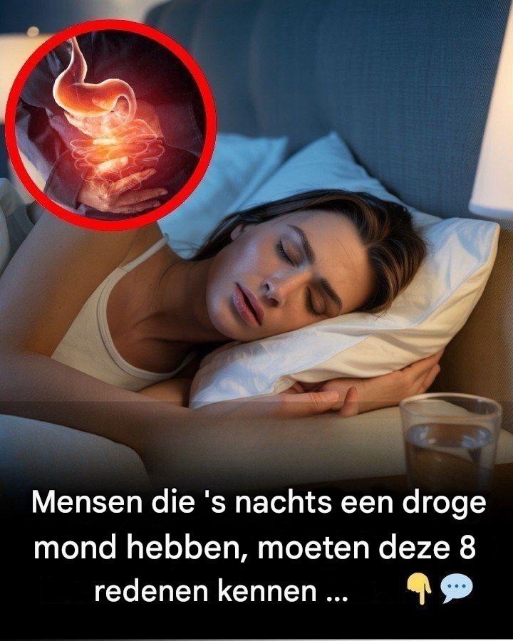 Terwijl u slaapt, blijft uw lichaam uw eten verteren. Hierbij wordt water aan uw lichaam onttrokken, wat leidt tot een droog gevoel in uw mond.