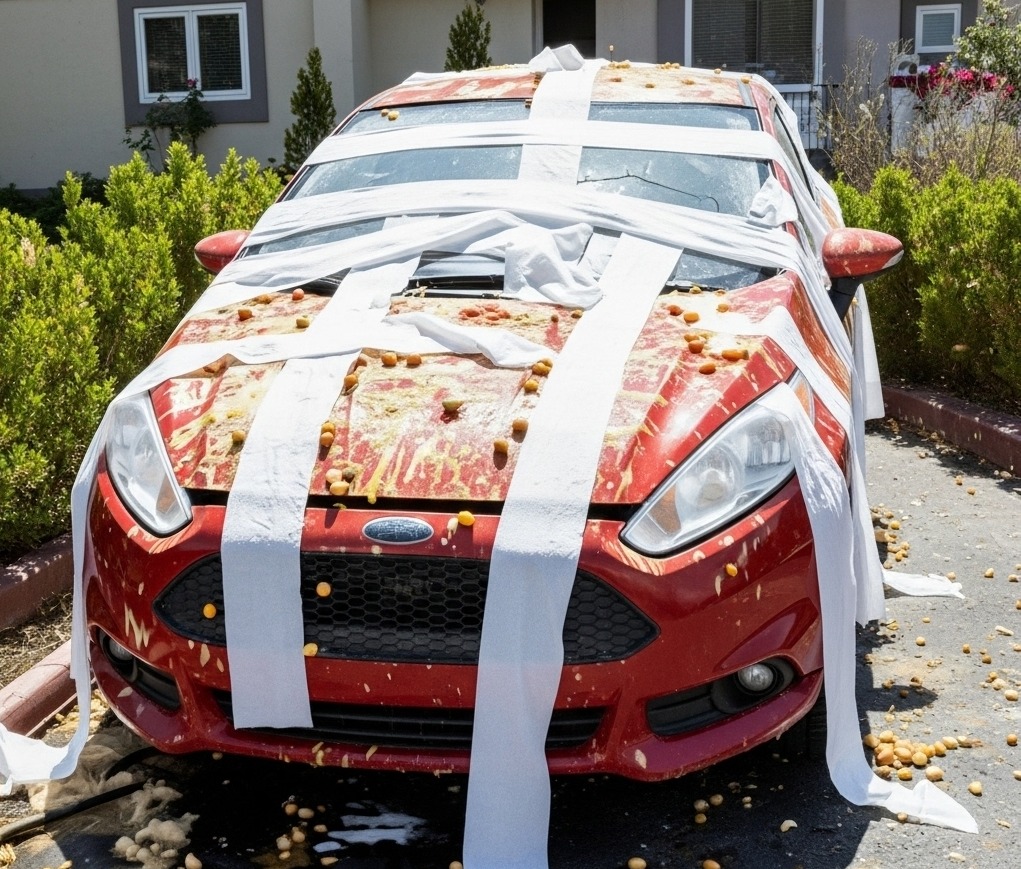 De ochtend voor Halloween deed ik mijn voordeur open en verstijfde. Mijn auto zat onder de eidooiers en het wc-papier.