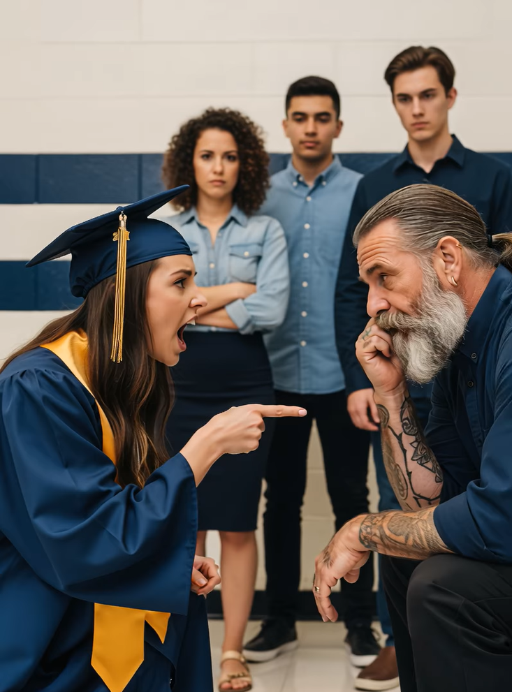 Megan keek snel en draaide toen haar blik weer terug. Ik kende die blik. Ze schaamde zich voor me – mijn gerimpelde gezicht, de tatoeages op mijn armen die verhalen vertelden over Vietnam en broederschap, mijn grijze baard die ik weigerde te knippen als ‘respectabele’ vaders voor haar vriendinnen.