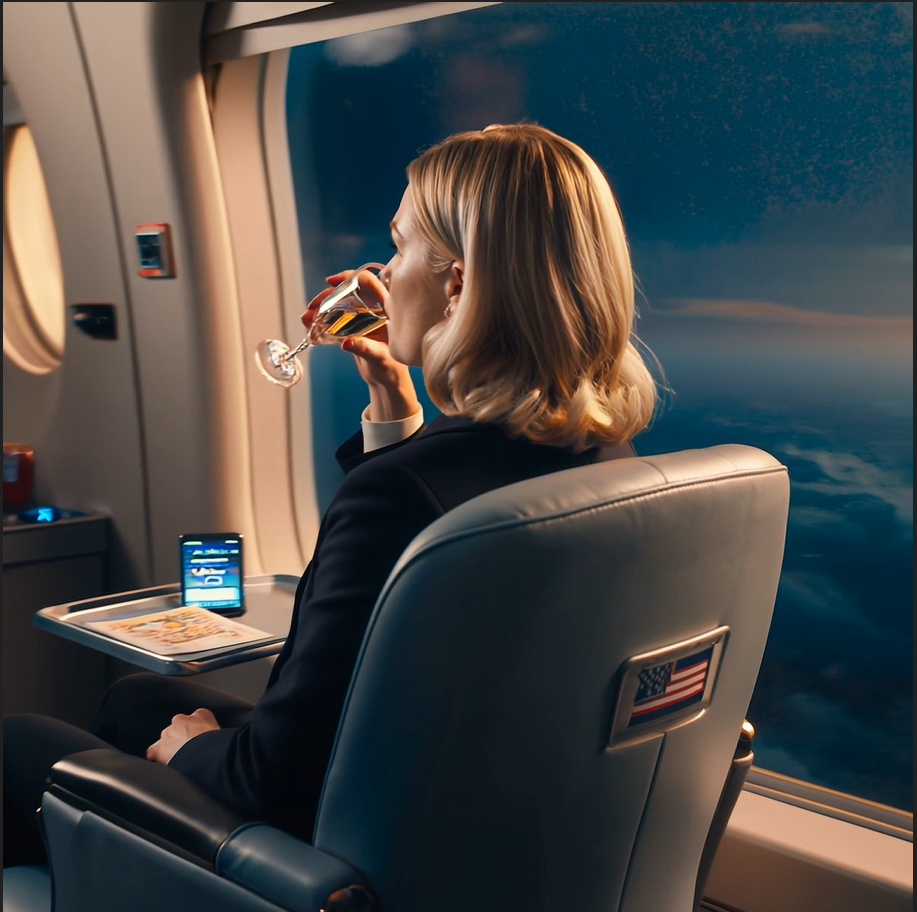 Eersteklas vlucht naar Parijs, met zijn creditcard.
