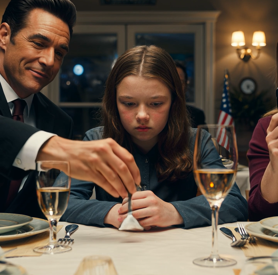 Mijn naam is Olivia. Ik ben nu 25, maar de nacht dat mijn leven in tweeën splitste, was ik 17. Ik zat aan het uiteinde van onze gepolijste eikenhouten eettafel en probeerde mezelf zo klein en stil mogelijk te maken, net als de extra vork die niemand gebruikte.