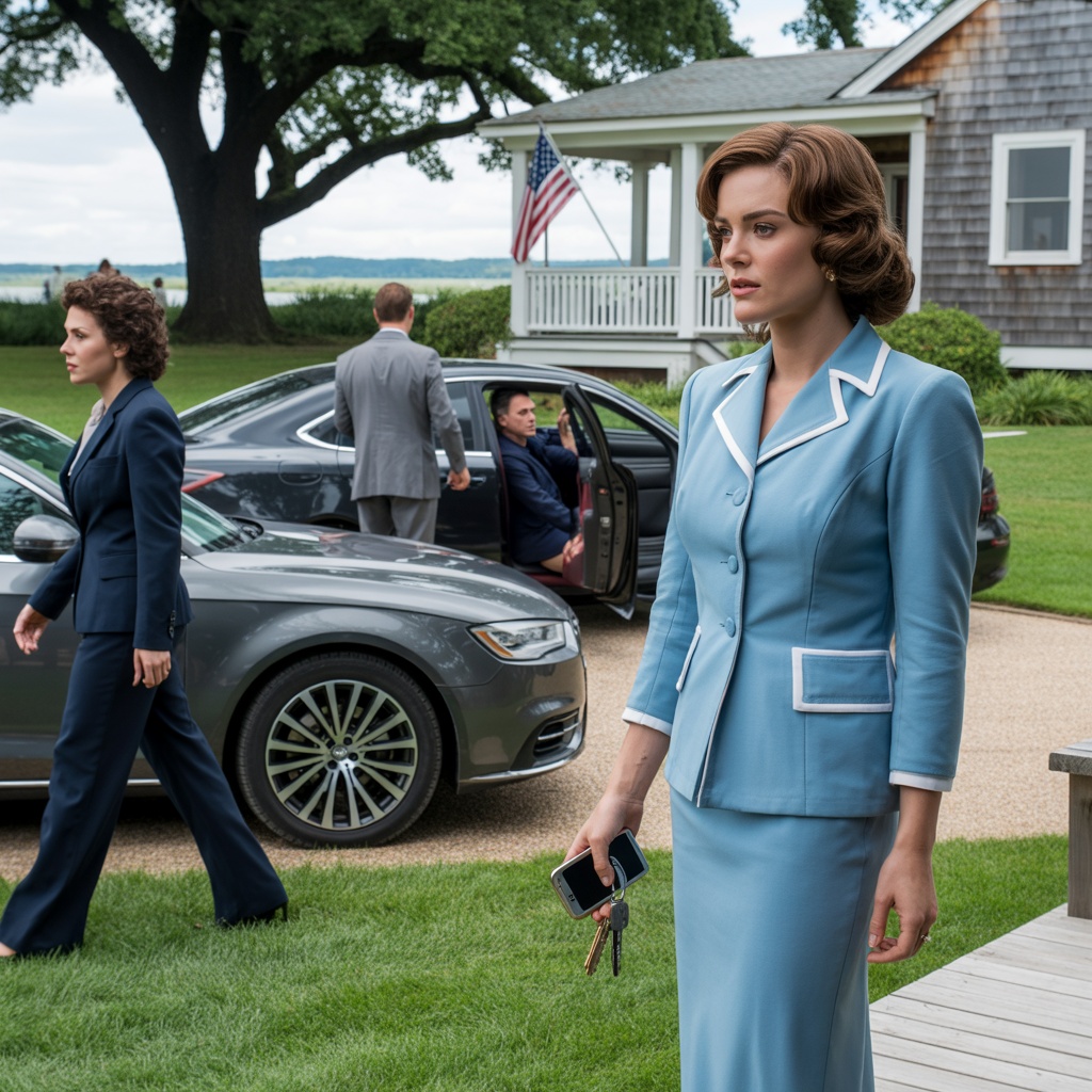 Twee andere voertuigen arriveerden – een Mercedes sedan en een Audi SUV – waaruit keurig geklede mensen stapten die in het kustzonlicht knipperden, hun gezichtsuitdrukkingen variërend van nieuwsgierig tot lichtelijk ontzet.