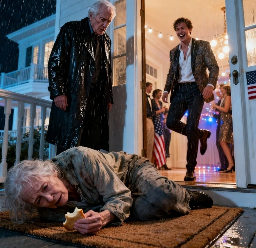 Voordat ik kon reageren, ging de deur open. Warmte, gelach en luxe barsten los. Mijn schoonzoon, Braden, ging met zijn gasten uit. Italiaans pak, tape in de hand, stille arrogantie.