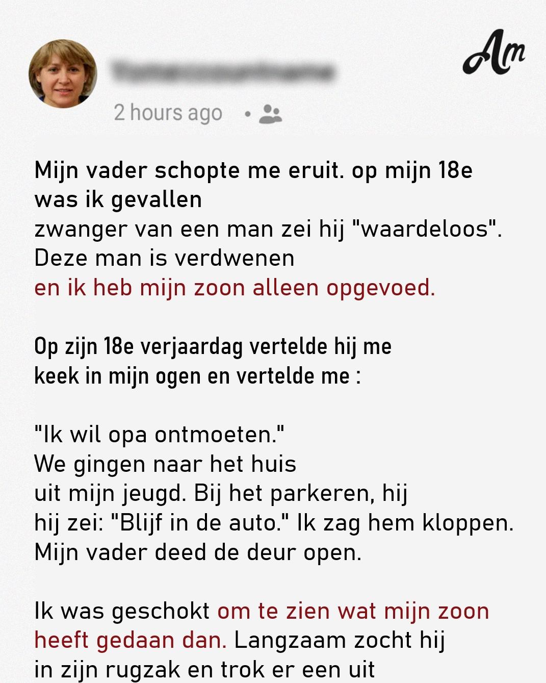 Mijn vader heeft me het huis uitgezet toen hij erachter kwam dat ik zwanger was. Achttien jaar later bezocht mijn zoon hem.