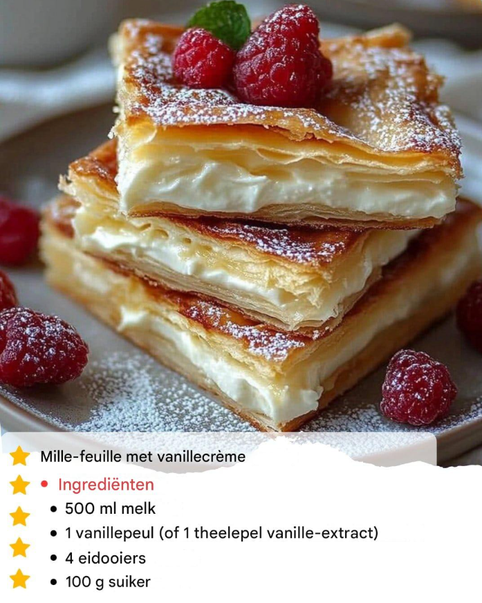 De mille-feuille, een klassieker uit de Franse patisserie, verrukt met zijn knapperige laagjes bladerdeeg en romige vanillecrème. Verfijnd maar verrassend eenvoudig thuis te maken, belooft het een explosie van texturen en smaken bij elke hap. Perfect om indruk te maken op je gasten of om jezelf gewoon te verwennen met een elegant dessert.