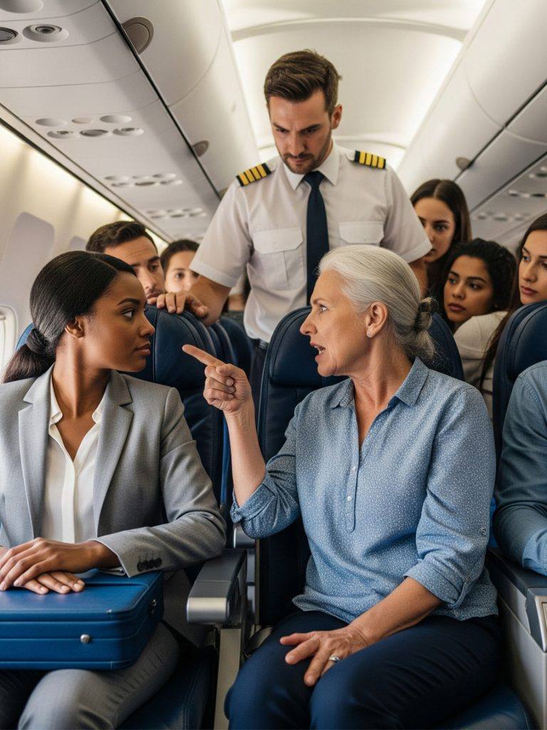 De verwende moeder begon meteen haar versie van de gebeurtenissen. « Ja, kapitein! Deze vrouw, » – ze wees met een vinger naar Naomi – « weigert haar plaats af te staan voor mijn zoon. We zitten uit elkaar en ze is egoïstisch. Ik ben ook een betalende klant. Ze zou naar achteren moeten verhuizen. »