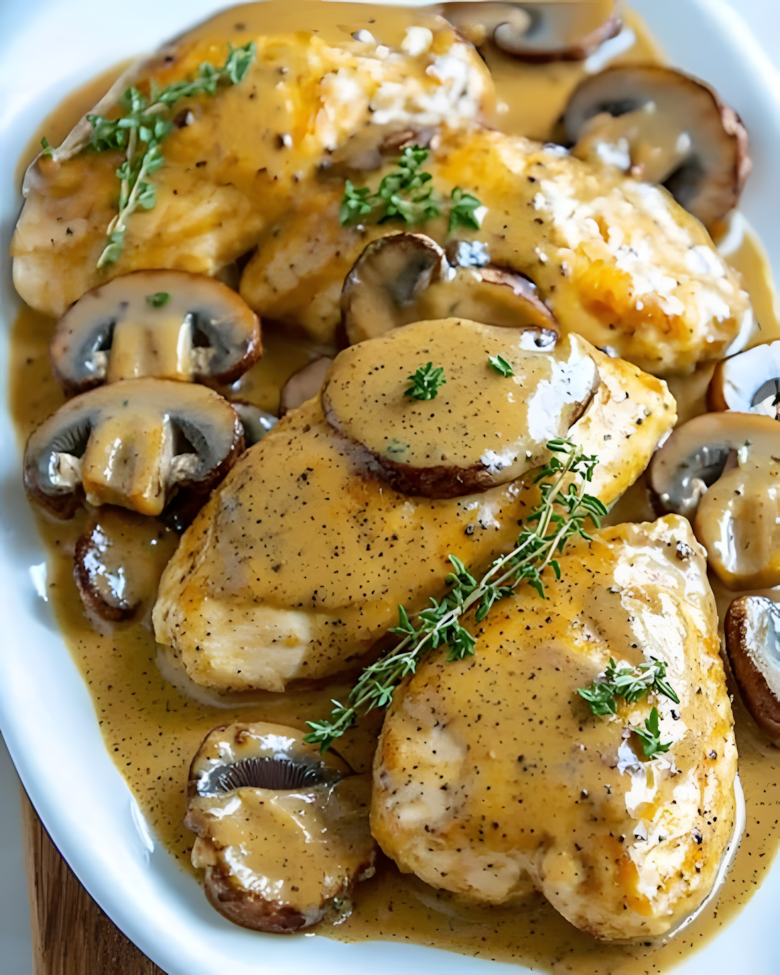 Romige Kipverrukking met Champignons en Ouderwetse Mosterd