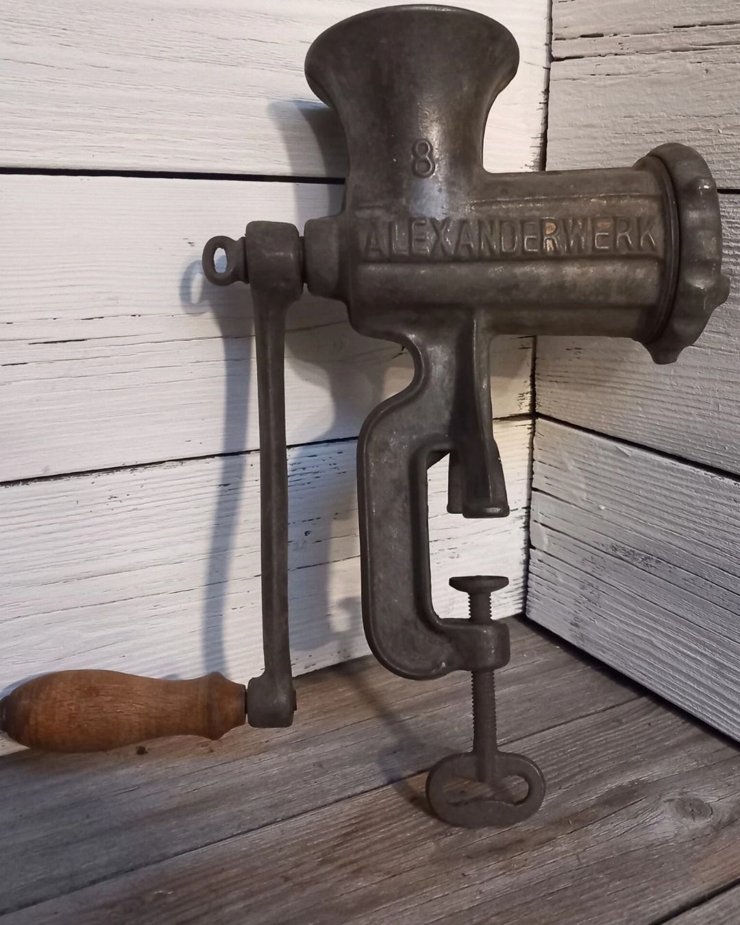 Het was in feite… een handmatige vleesmolen! Een voorwerp dat ooit in elke keuken te vinden was, maar nu bij de meeste jongeren onbekend is. Volledig van metaal gemaakt, was het onmisbaar bij het koken thuis.